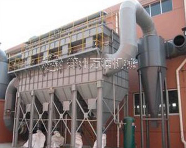 当含尘气体从进风口进入收尘器后,首先碰到进出口中间的斜隔板,气流便转向流入灰斗,同时气流速度变慢,由于惯性作用,使气体中粗颗粒粉尘落入灰斗,起到预收尘的作用。进入灰斗的气流随后折而向上通过内部装有金属骨架的滤袋,粉尘被捕集在滤袋的外表面,净化后的气体进入滤袋室上部的清洁室,汇集到出风管排出。壳体用隔板分成若干个独立的收尘室,按照给定的时间对每个收尘室轮流进行清灰。每个收尘室装有一个提升阀,清灰时提升阀关闭,切断通过该收尘的过滤气流,随即脉冲阀开启,向滤袋内喷入高压空气,以清除滤袋外表面上的粉尘。各收尘室的脉冲喷吹宽度和清灰周期,由专用的清灰程序控制器自动连续工作。