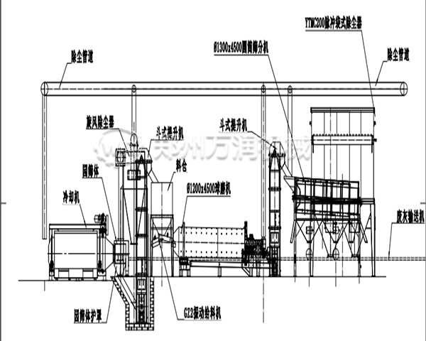 单独的热铝灰转化冷铝灰分离生产线:热铝灰→→风式冷却机→→料仓→→自动给料机→→封闭式铝灰分离机→→成品